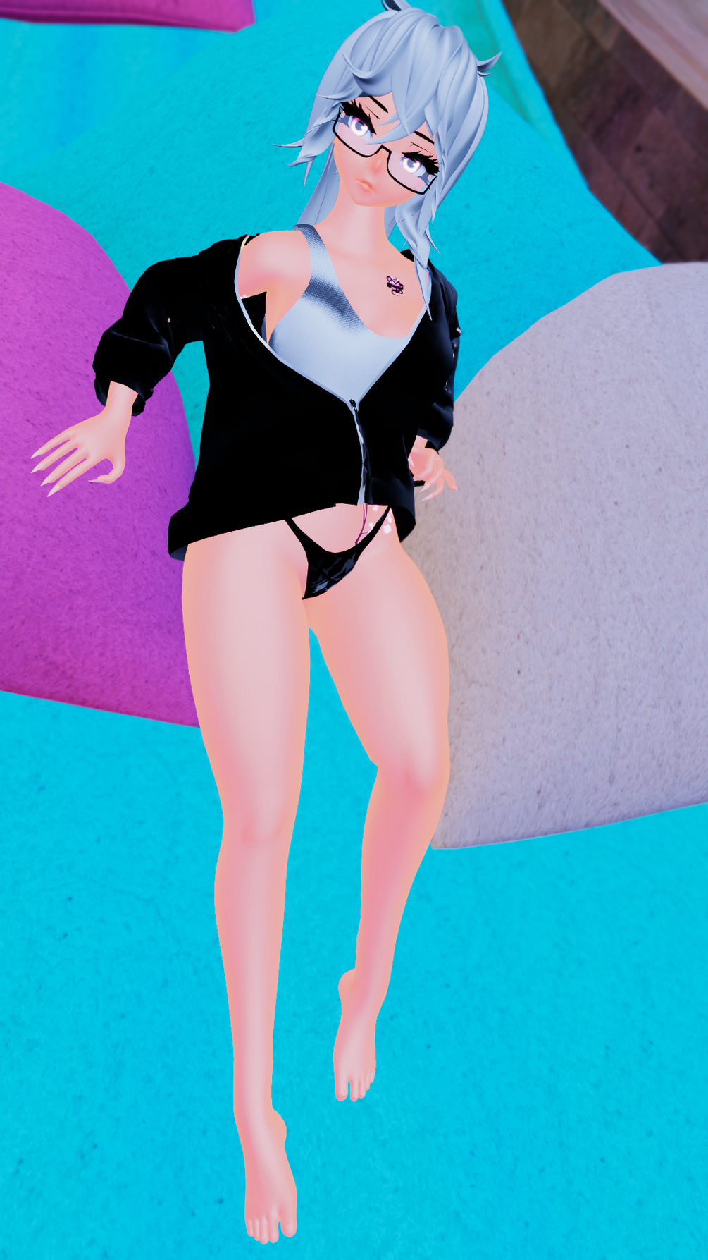 Head OG mesh by: Godfall#4040 // Eye textures by: WetCat#6969 // Base OG mesh by: Pandaabear#9873 // Tattoo edits by: me // PonyTail mesh by: WetCat#6969 // PonyTail rerig by: me // Back hair mesh by: velvet#0888 // Backhair rerig by: me // Front hair mesh by: babybeee#2201 // Collar mesh by: Sezzy#0001 // Gloves mesh by: Cupkake#6666 // Inner jacket mesh by: Cupkake#6666 // Outer jacket mesh by: Yuriya#8194 // Offsleeve mesh by: Cupkake#6666 // Socks mesh by: Maible#8888 // Shorts mesh by: Xian_Vr // Thong mesh by: Nauuki#5353 // Tanktop mesh by: velvet#0888 // Glasses mesh by: Cupkake#6666 // Horns mesh by: Cupkake#6666 // Blindfold mesh by: berryvee#0697 // Wings mesh by: FillMyPantry/Deleted Luser#1322 // Belly Piercing mesh by: berryvee#0697 // Nipple Piercings mesh by: FillMyPantry/Deleted Luser#1322 // Ankle chain mesh by: me // Tail mesh by: Axciatheikea#8237 // Halo mesh by: me // Locomotion fix by: WetCat#6969 // Everything else by: me